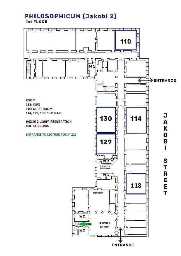 This page provides a map of the Winter School’s main venue, Jakobi 2, and practical bus information for travelling to the National Archives on the second day.